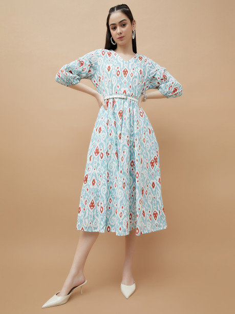 Women Fit and Flare Blue Midi/Calf Length Dress