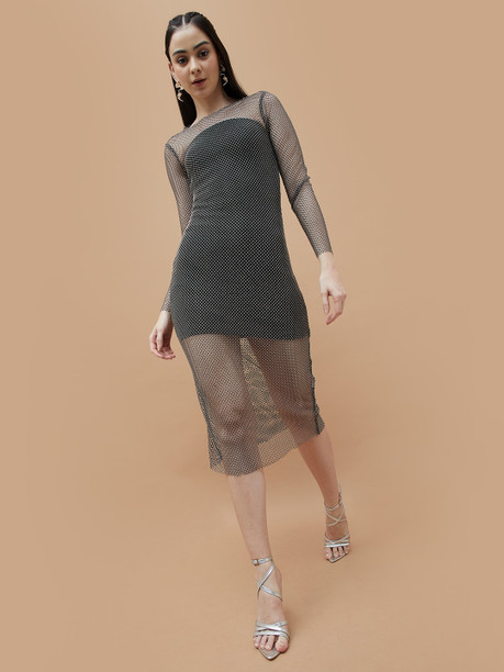 Women Fit and Flare Dark Blue Midi/Calf Length Dress