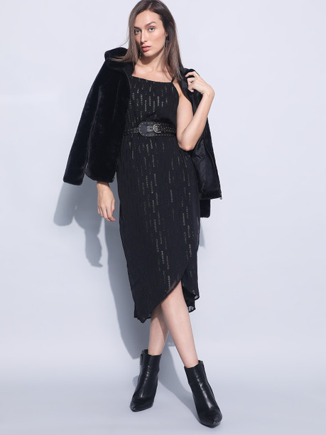 Women Fit and Flare Grey Midi/Calf Length Dress