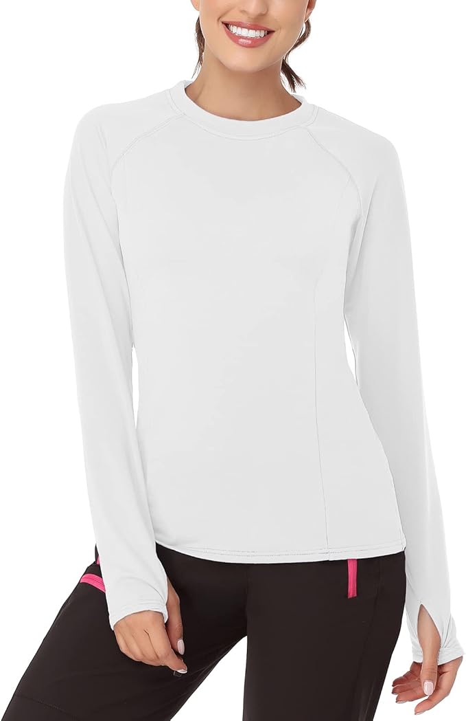 Long Sleeve Running Top Womens with Thumb Hole Compression Thermal Base Layer Ladies Fleece