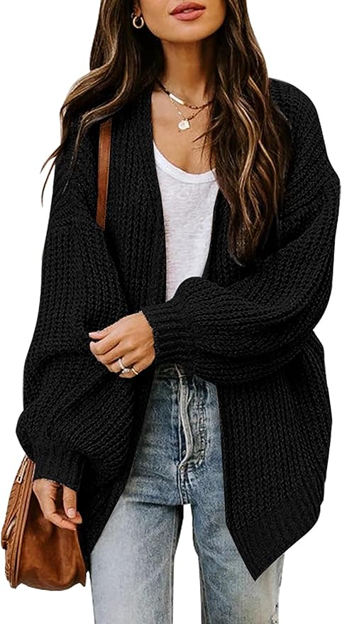 Women's Chunky Knit Open Front Sweater Long Lantern Sleeve Oversized Knitwear Cardigans