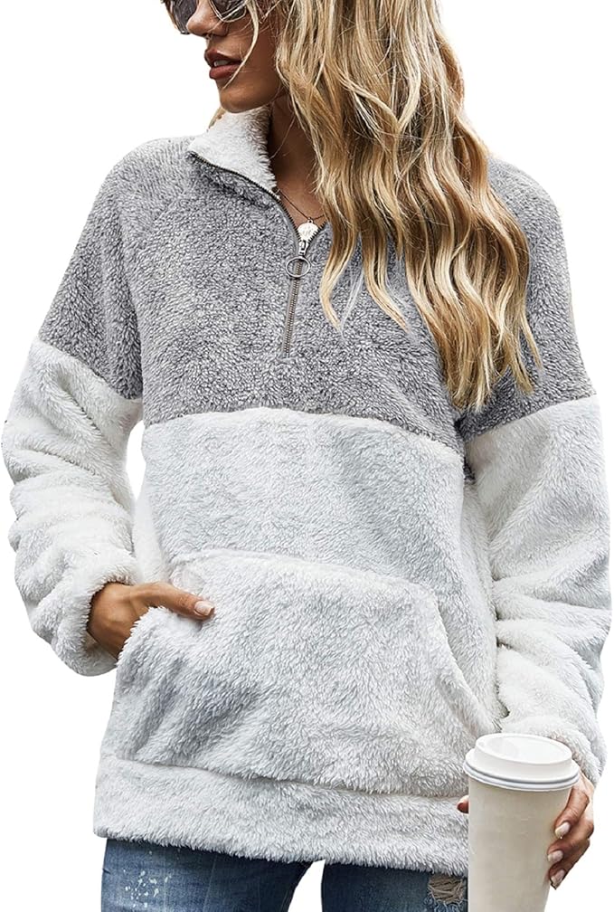 Winter Warm Pullover Zip Up Coat Tunic Sweatshirt Jumper Tops with Pockets Outwear Jacket