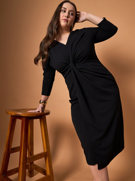 Women Skater Black Above Knee/Mid Thigh Length Dress
