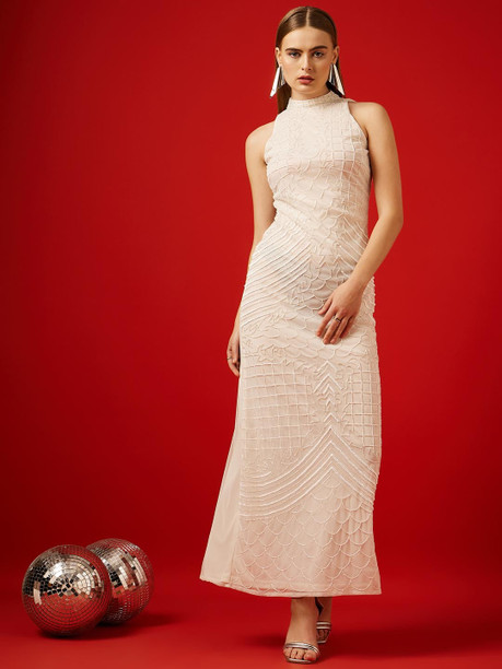 Women Fit and Flare Pink Maxi/Full Length Dress
