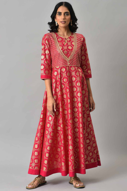 Women Ethnic Dress Pink Below Knee Dress