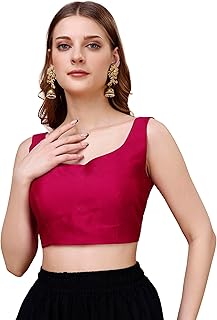 Women's Taffeta Solid Sleeveless Readymade Saree Blouse for Women Stylish