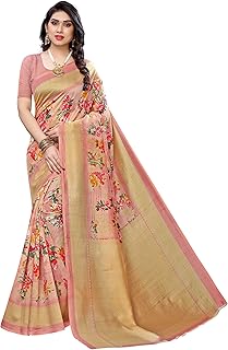 Womens New Latest Bollywood Style Linen Cotton Floral Printed Fancy Lace Border Saree with Blouse | Saree For Womens