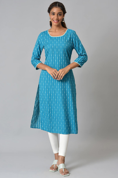 Women Solid, Embroidered Pure Cotton Straight Kurta