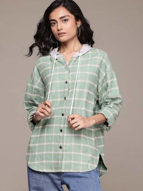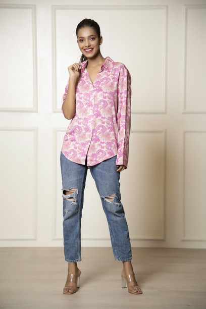 Women Regular Fit Self Design Spread Collar Casual Shir...