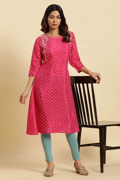 Women Solid, Embroidered Viscose Rayon A-line Kurta