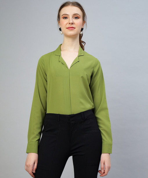 Women Regular Fit Solid Slim Collar Casual Shirt