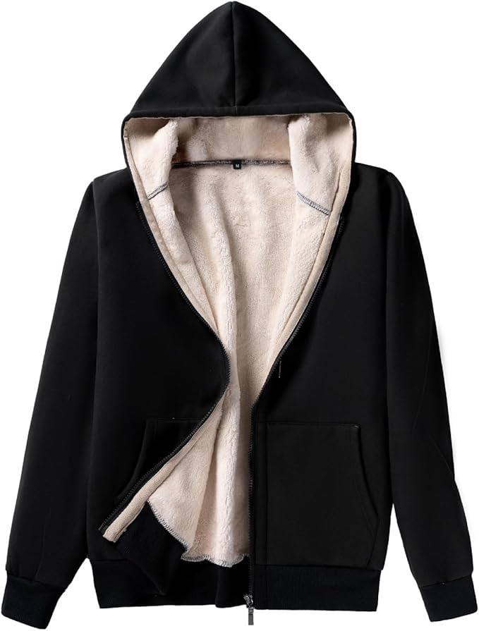 Ladies Plain Hoodie Winter Warm Fleece Lined Zip Up Jacket Coat for Women