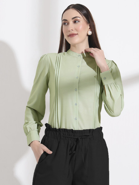 Women Regular Fit Solid Slim Collar Casual Shirt