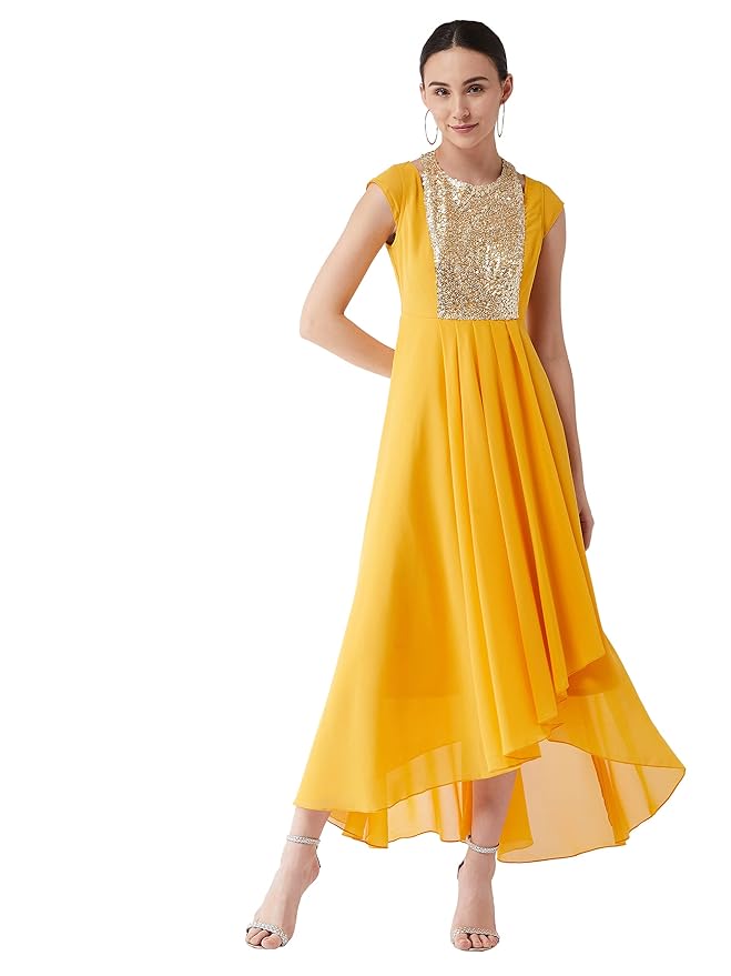 Style: Embellished|Fit: Relaxed Fit|Pattern: Solid|Neck: Round neck|Sleeves: Cap Sleeve|Length: Maxi