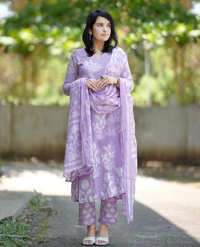 This set includes: 1 Kurta with 1 Pant & 1 Dupatta || Work : Printed || Neck Style:- V-Neck