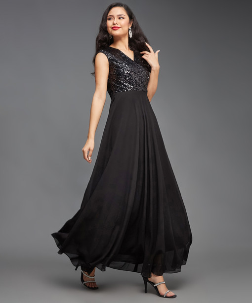 Women Fit and Flare Black Above Knee/Mid Thigh Length D...