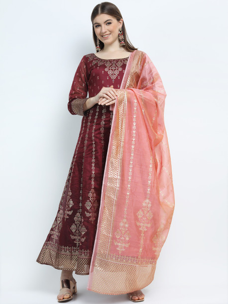 Women Ethnic Dress Maroon Maxi/Full Length Dress