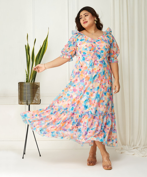 Women Fit and Flare Multicolor Midi/Calf Length Dress