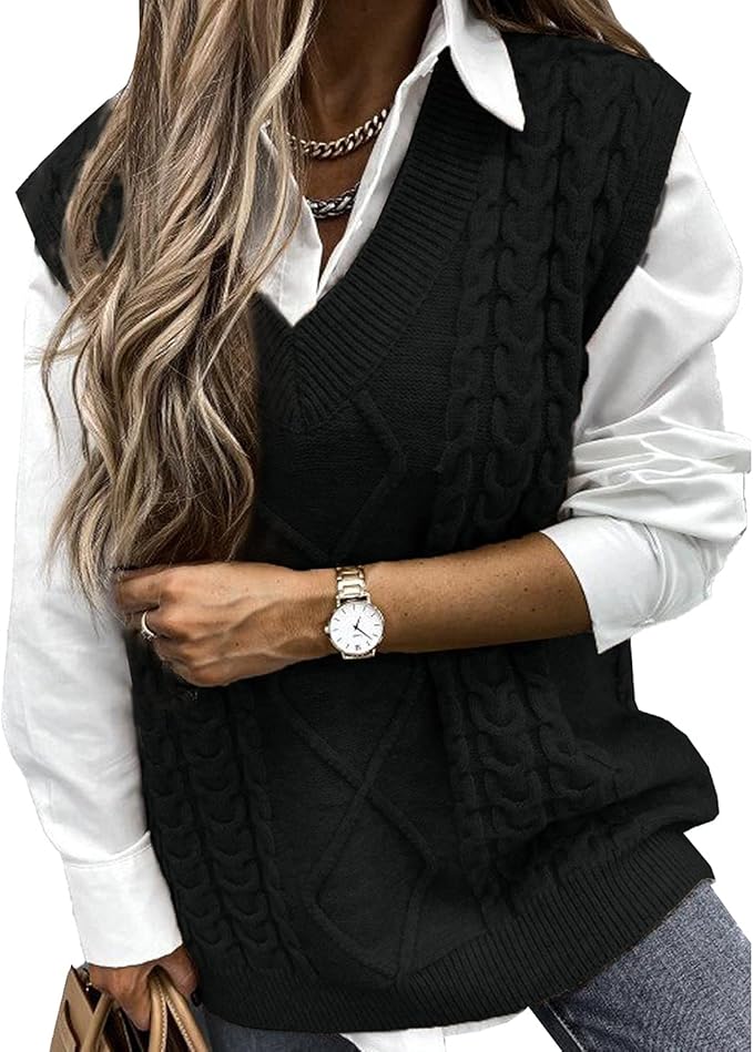 V Neck Cable Knit Vintage Retro Stylish Spring Autumn Winter Chunky Women
