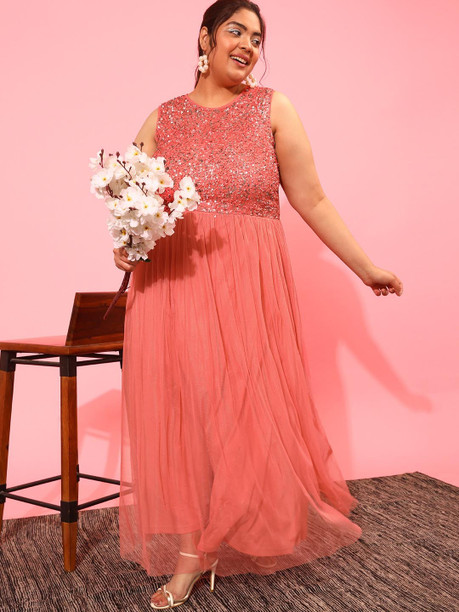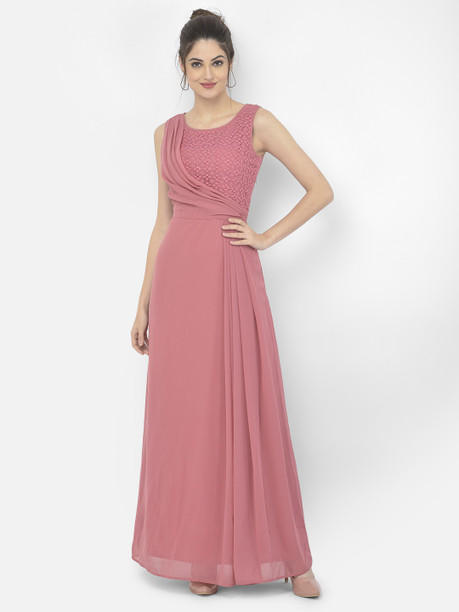 Women Fit and Flare Pink Maxi/Full Length Dress