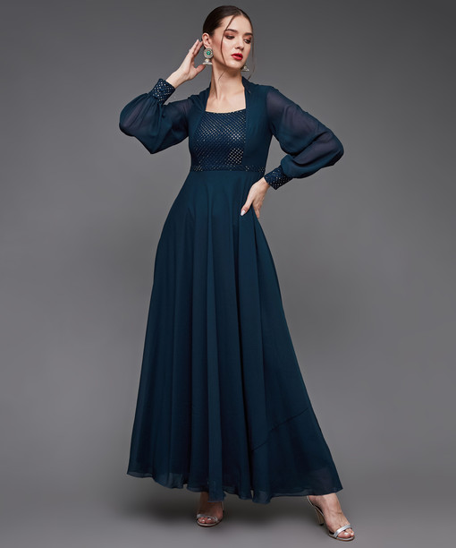 Women Fit and Flare Dark Blue Midi/Calf Length Dress