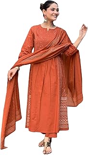 Women's Rayon Viscose Anarkali Printed Kurta with Pant & Dupatta