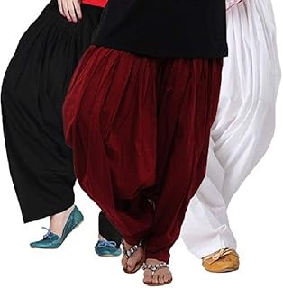 Women's Loose High Rise Combo of 3 Solid Cotton Mix Best Indian Ethnic Comfortable Readymade Punjabi Semi Patiala Salwar