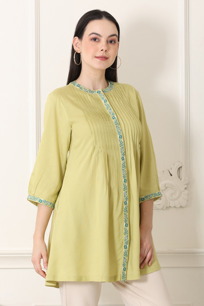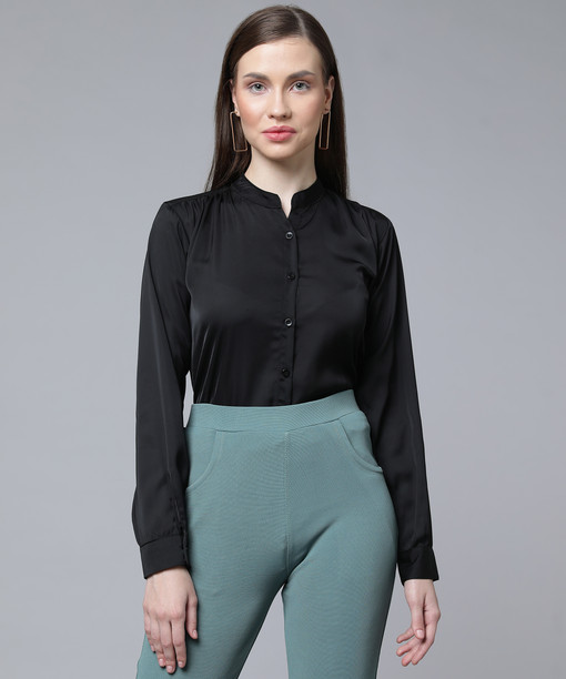 Women Regular Fit Solid Mandarin Collar Formal Shirt