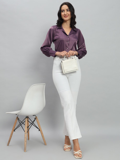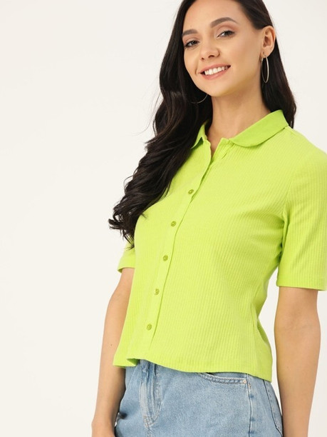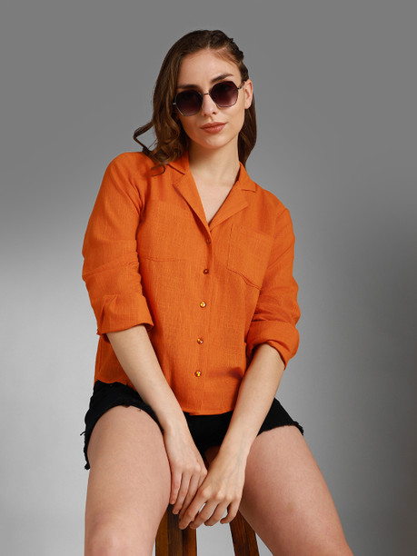 Women Regular Fit Solid Lapel Collar Casual Shirt