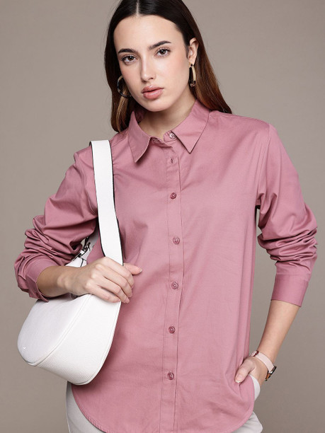 Women Regular Fit Solid Spread Collar Casual Shirt