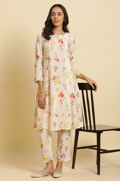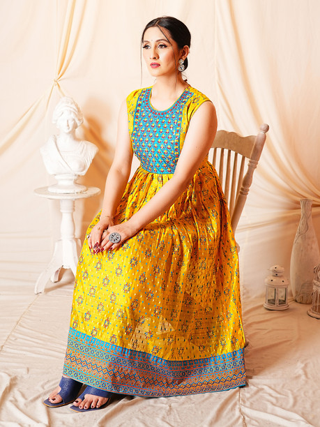 Women Embroidered, Printed Silk Blend Anarkali Kurta