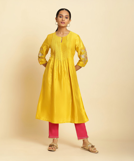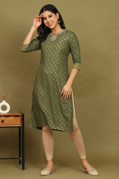 Women Solid, Embroidered Viscose Rayon A-line Kurta