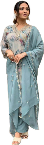 Pack of 3 Women Printed Organza Ethnic Dress With Attac...