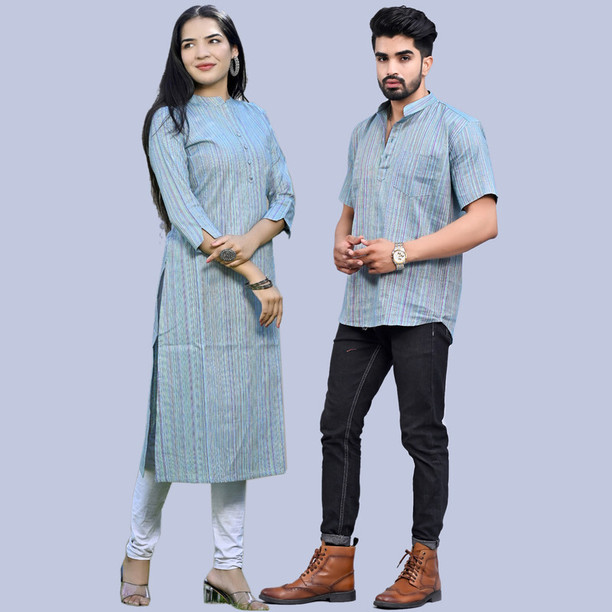 Pack of 2 Women Striped Khadi Cotton Straight Kurta