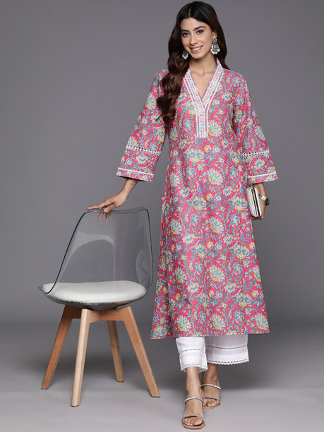 Women Chikan Embroidery, Embroidered Pure Cotton Straig...