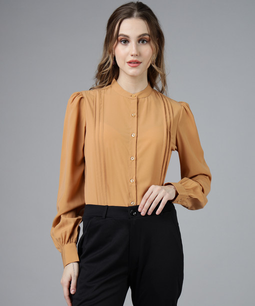 Women Regular Fit Solid Slim Collar Casual Shirt