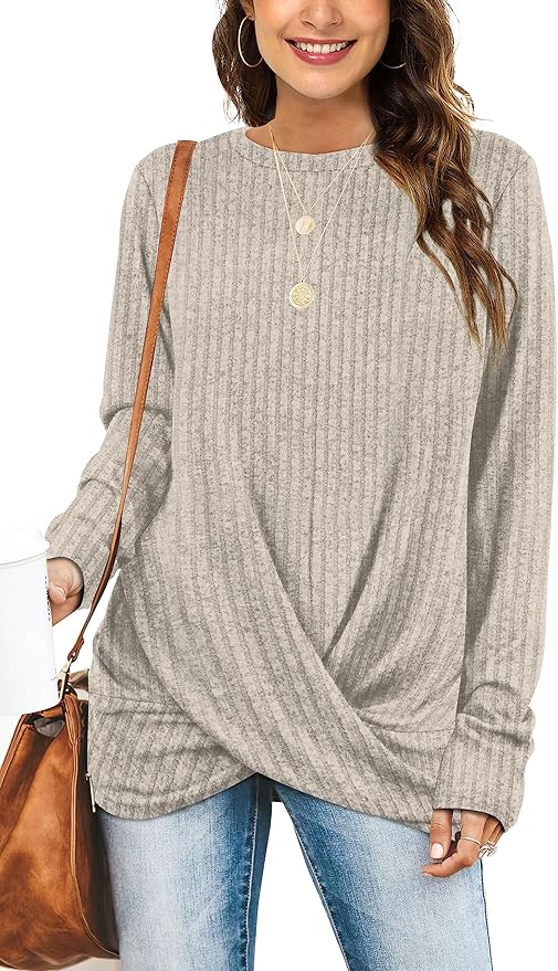 Womens Long Sleeve Tops Ladies Loose Fit Jumpers Twist Front Sweatshirt