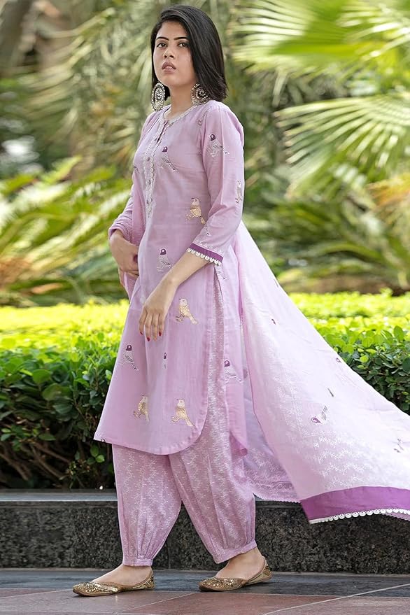 This set includes: 1 Kurta with 1 Pant & 1 Dupatta || Work : Printed || Neck Style:- V-Neck